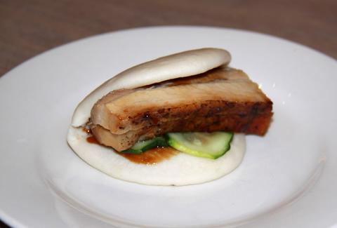 The OG pork bun that spurred a million copycats is surprisingly simple: steamed bao, roasted belly, cucumbers, and scallions.